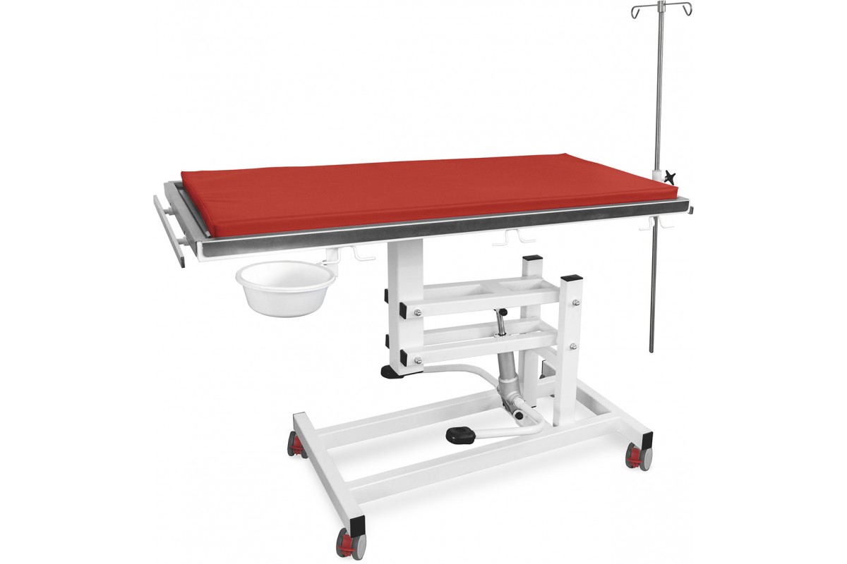 Stół weterynaryjny z hydrauliczną regulacją wysokości.